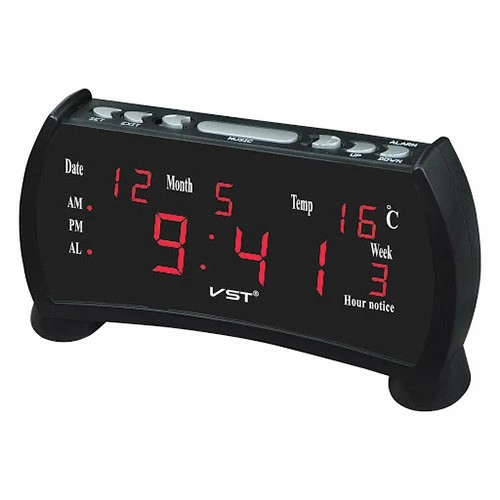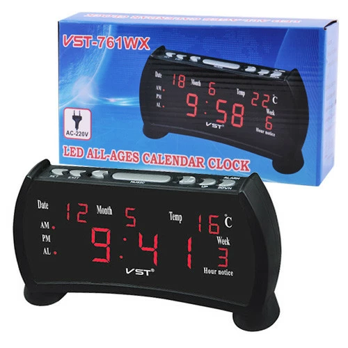Часы сетевые VST-761WX-1, красные, температура, 220V