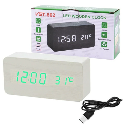 Часы сетевые VST-862-4 зеленые, (корпус белый) температура, USB
