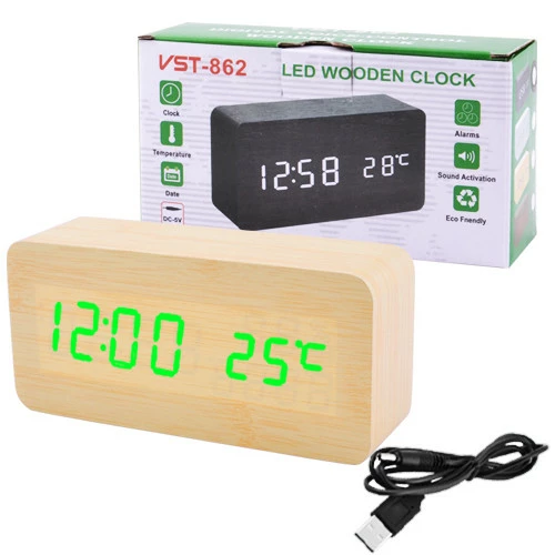 Часы сетевые VST-862-4 зеленые, (корпус желтый) температура, USB