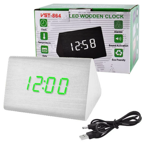 Часы сетевые VST-864-4 зеленые, (корпус белый), USB