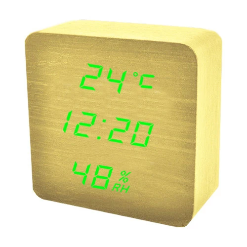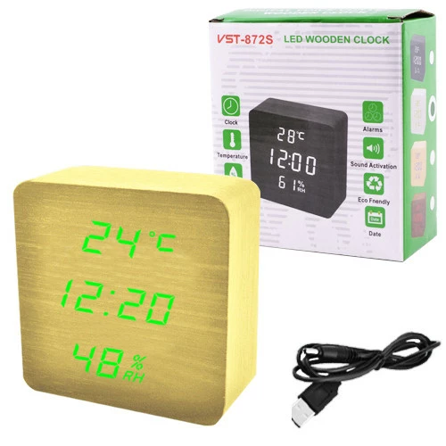 Часы сетевые VST-872S-4 зеленые, (корпус желтый) температура, влажность, USB