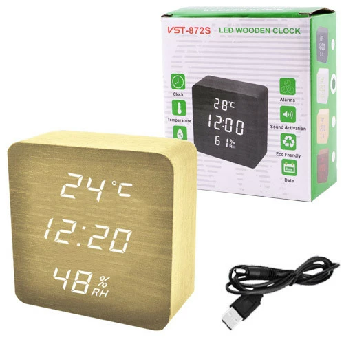 Часы сетевые VST-872S-6 белые (корпус желтый), температура, влажность, USB