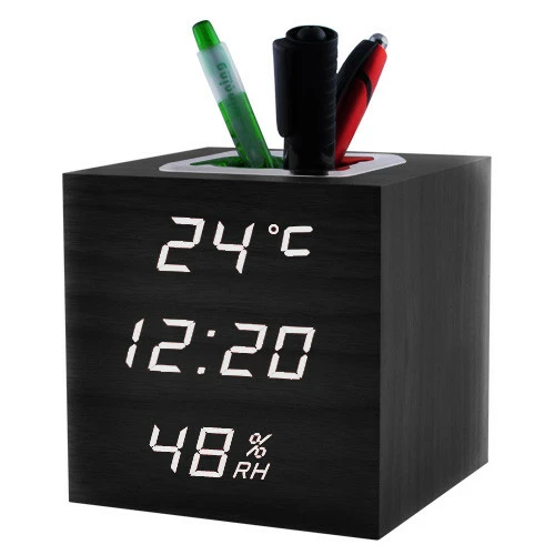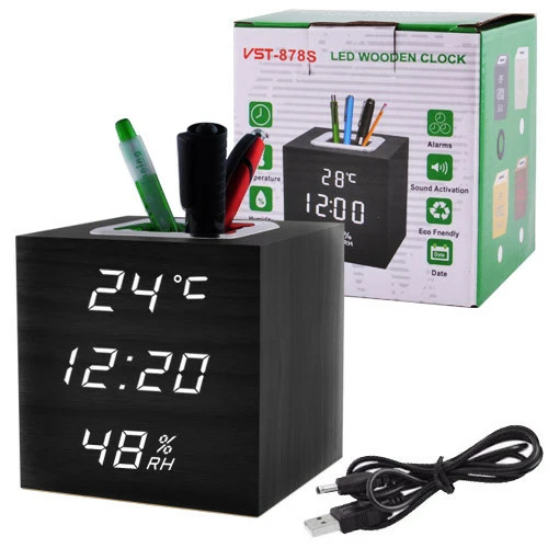 Часы сетевые VST-878S-6, белые, (корпус черный) температура, влажность, USB
