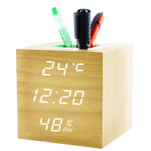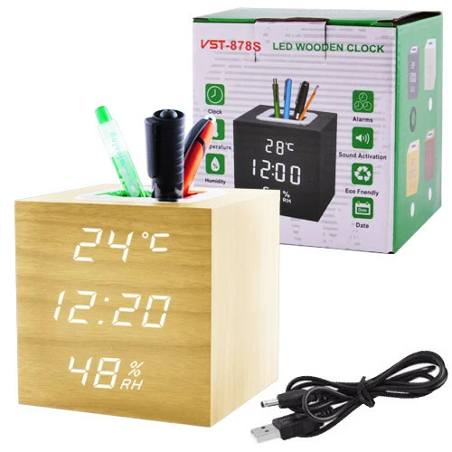 Часы сетевые VST-878S-6, белые, (корпус желтый) температура, влажность, USB