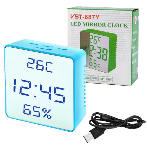 Часы сетевые VST-887Y-5, голубые, температура, влажность, USB