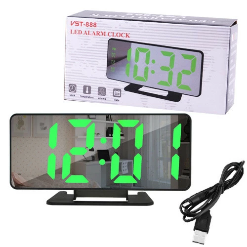 Часы сетевые VST-888-4, зеленые, температура, USB