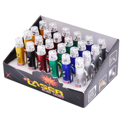 Фонарь брелок 9619-2LED, лазер, 3хAG13, карабин