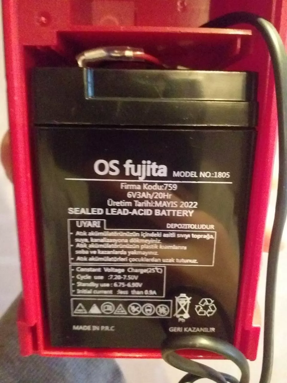 - Перезаряжаемая свинцово-кислотная батарея: 6V/3000mAh