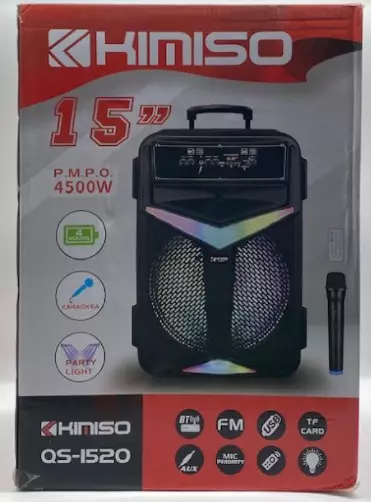 Колонка KIMISO QS-1520 BT (с проводным микрофоном) (15'BASS / 4500W) (1шт)